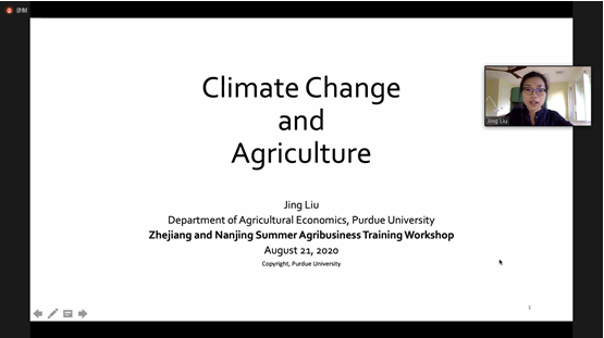 在本次访学交流中,普渡大学11位教授为同学们准备了内容丰富的专题讲座,围绕美国的农业概况,大宗农产品市场、农商产业组织、食物产业链及新冠、食物市场营销、美国畜牧业、国际贸易、替代能源、农业金融信贷、气候变化,与大家进行了在线交流讨论。