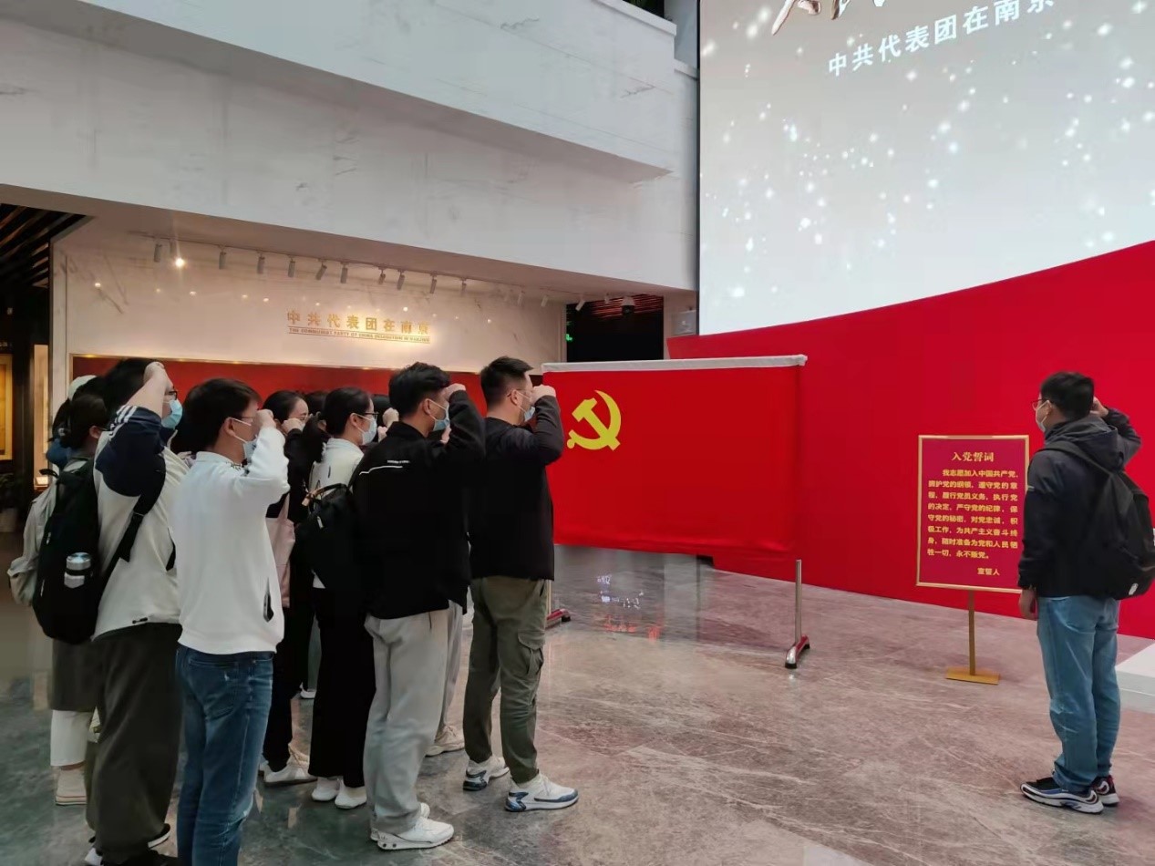 全体党员来到国共南京谈判史料馆展厅,面向党旗,重温入党誓词,砥砺前进初心。在鲜红的党旗前,全体党员举起右手、紧握拳头,在支部副书记梁宇亮的带领下庄严宣誓,每一句誓言表达了每位党员对党和人民的无限忠诚,深深感受党员的责任、使命和荣耀,同时更加坚定了为我们共产主义事业奋斗终身的信心和决心。
