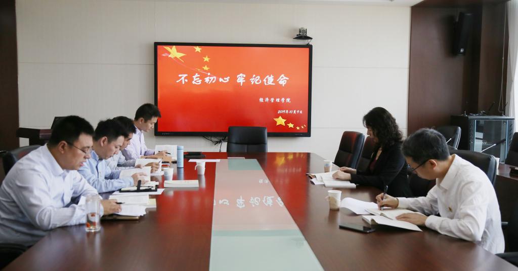 10月9日,按照学校统一部署要求和学院“不忘初心、牢记使命”主题教育工作方案安排,bat365在线平台领导班子组织“不忘初心、牢记使命”主题教育第二次集中学习,重点学习了《习近平总书记关于“不忘初心、牢记使命”论述摘编》部分内容。院党委书记姜海、院长朱晶等全体领导班子成员参加学习。