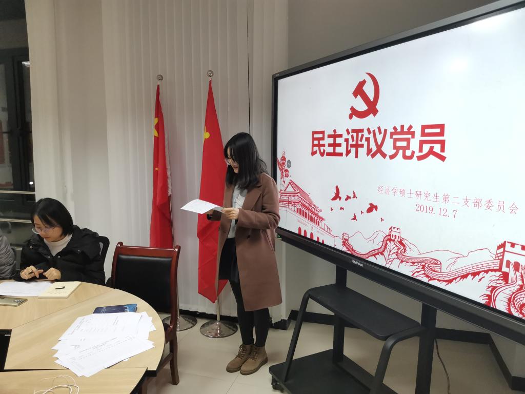 2019年12月7日下午19时,bat365在线平台经济学硕士研究生第二支部委员会在第三实验楼725党员实境课堂开展组织生活会及民主评议党员。本次会议由党支部书记余澜主持,本支部所有正式党员、预备党员出席本次会议。
