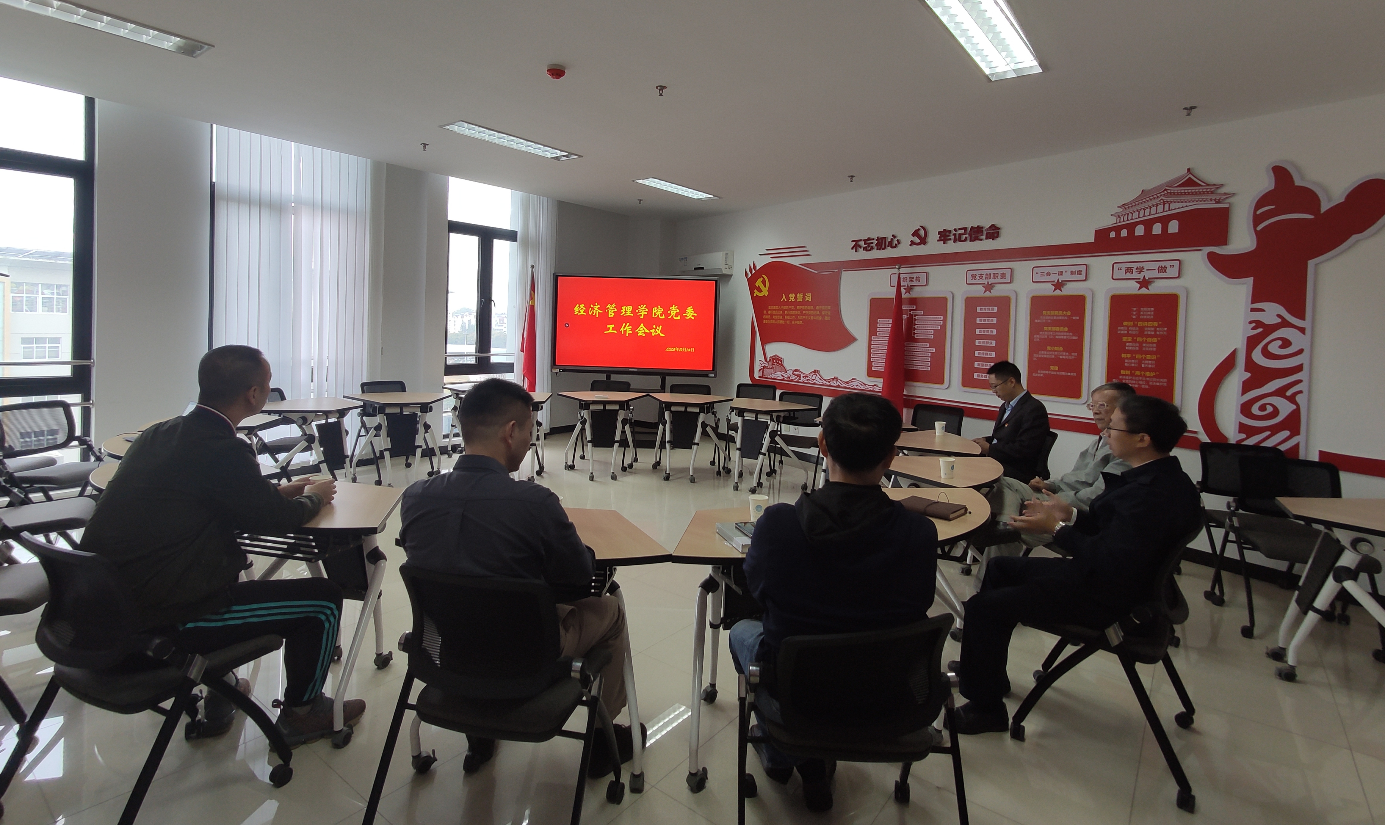 2020年10月15日上午,bat365在线平台党委召开工作会议。会议在第三实验楼725举行。院党委书记姜海主持会议,副书记宋俊峰,党委委员钟甫宁、周曙东、应瑞瑶、胡浩、耿献辉、易福金、展进涛等参加会议。