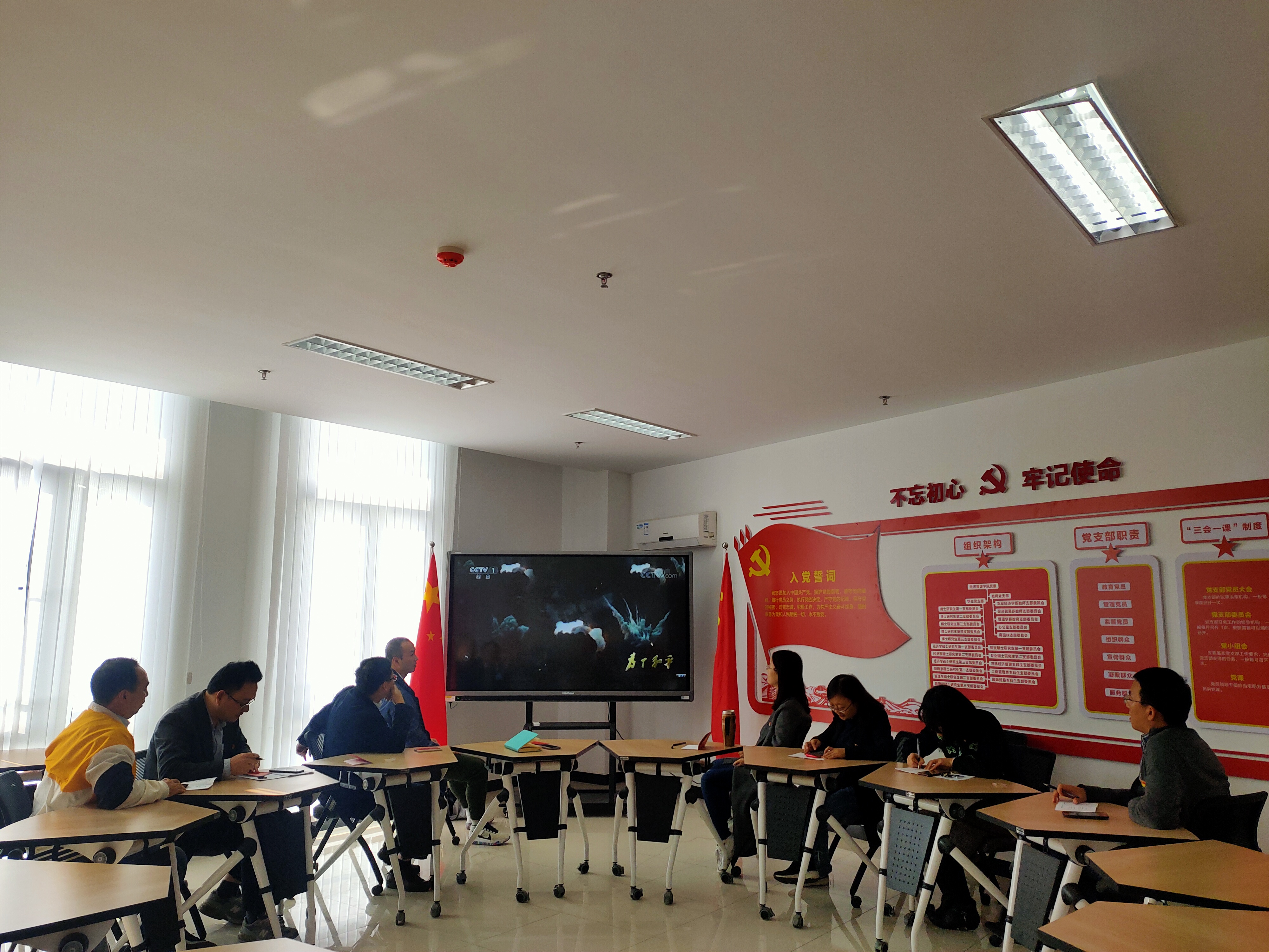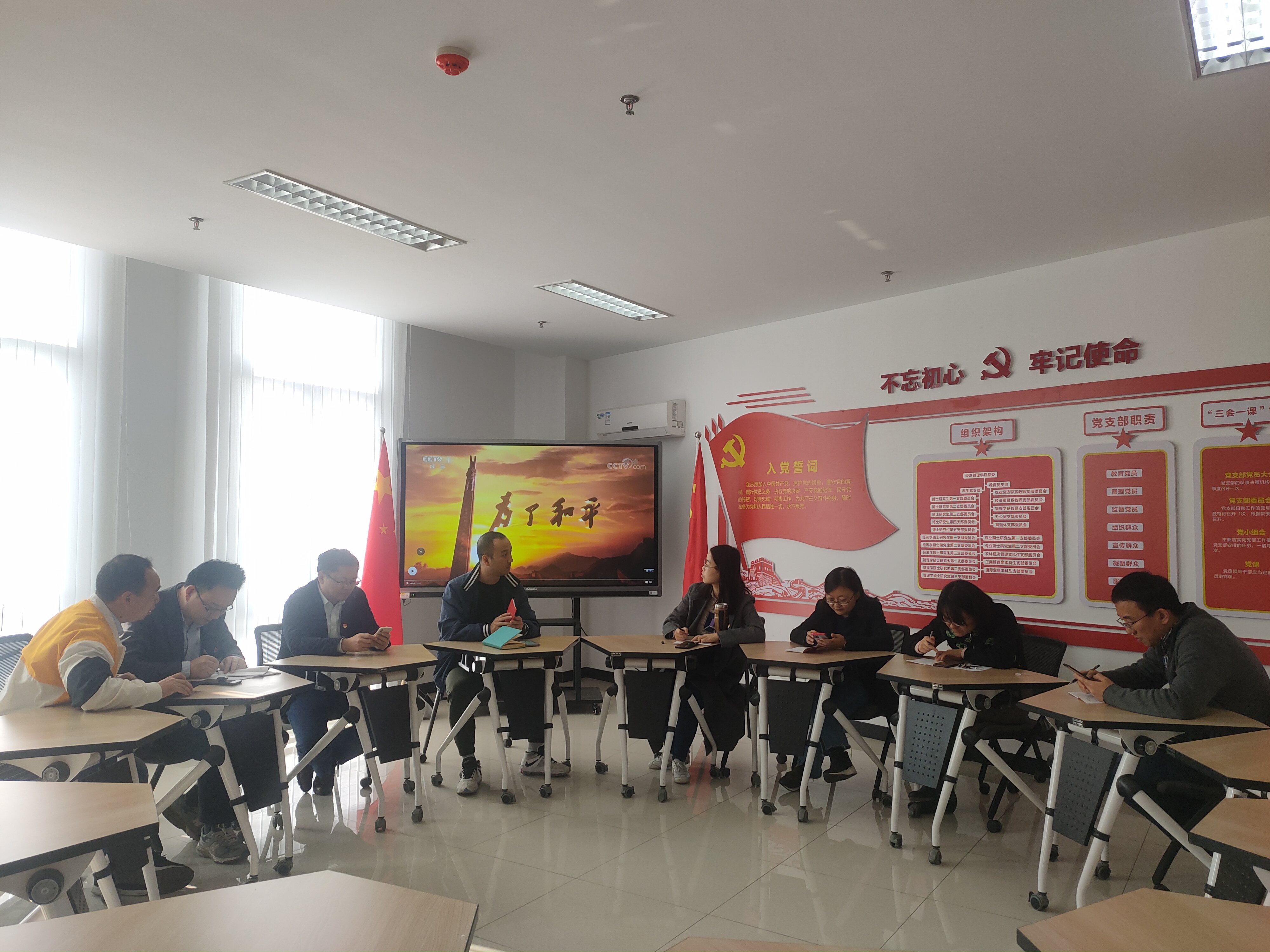 讨论结束后,经贸系党支部书记周力同志组织与会的党支部党员同志观看大型纪录片《为了和平》,深入学习伟大的抗美援朝精神,加强对新时代爱国主义的理解。