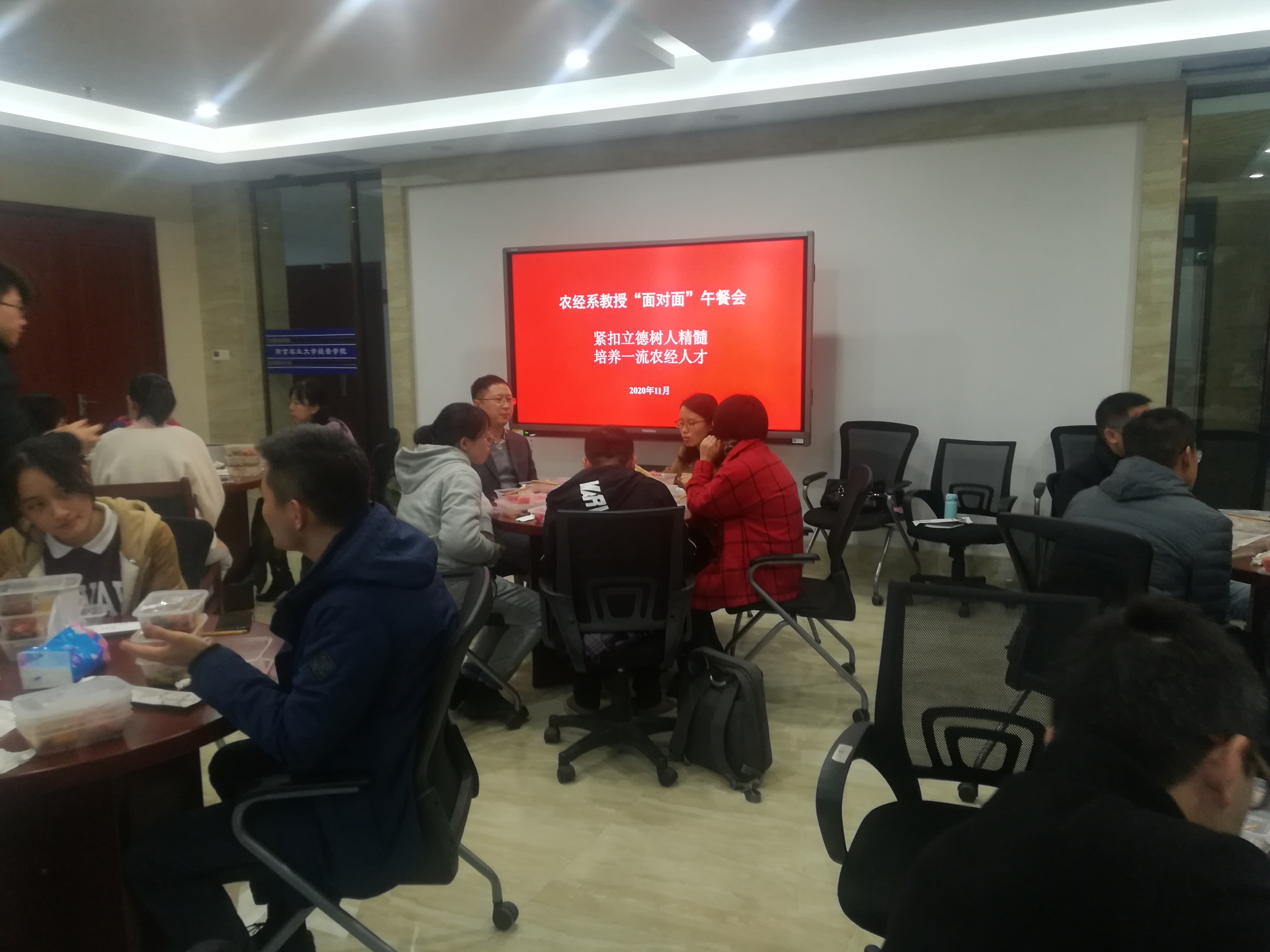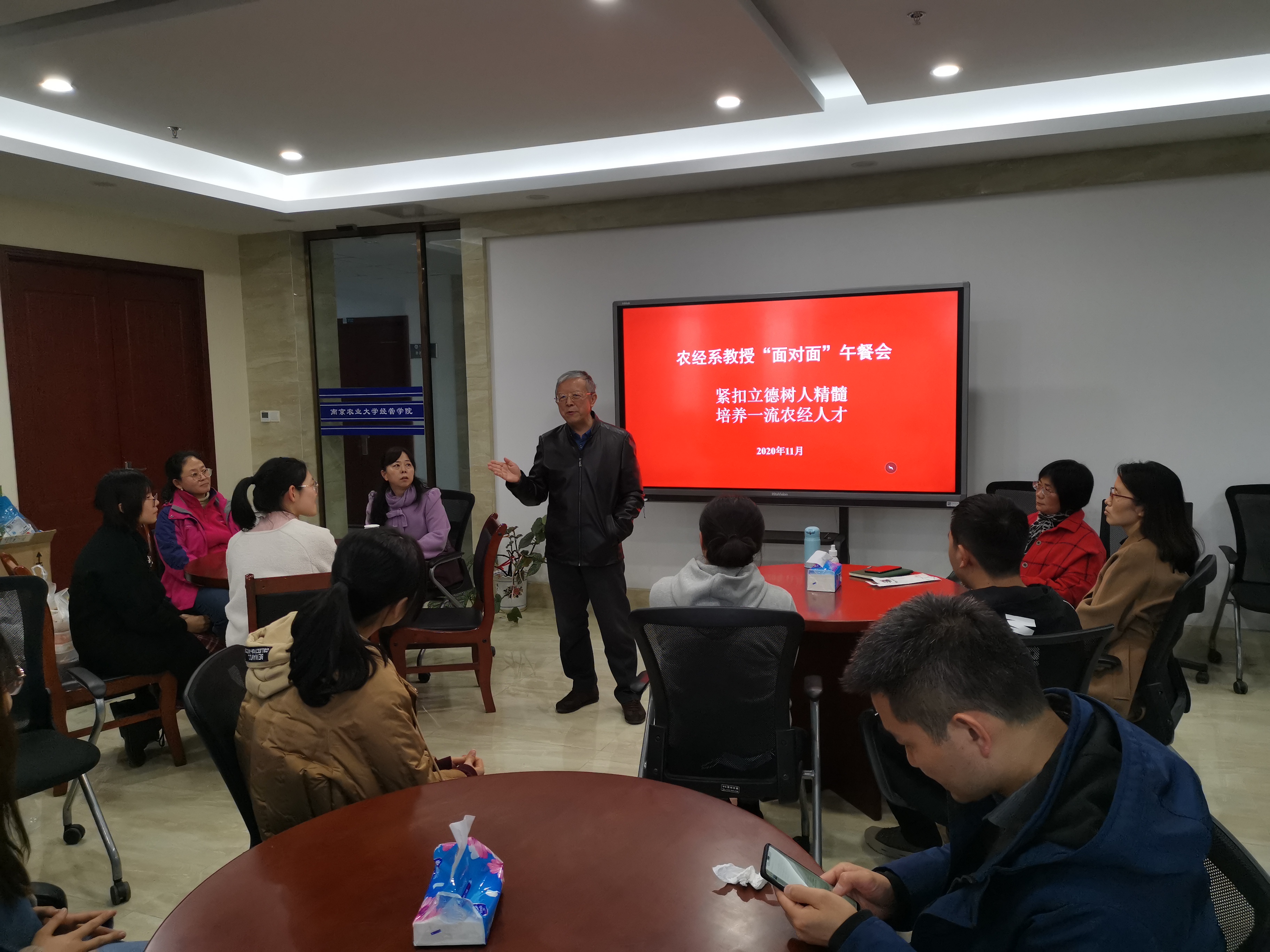 农业经济学系教师党支部全面贯彻党的教育方针,坚持社会主义办学方向,落实立德树人根本任务,遵循教育规律,紧扣立德树人精髓,培养一流农经人才。党支部于2020年11月26日在bat365在线平台第三试验楼7楼活动室组织开展了第二期“农业经济学系教授—学生面对面”主题党日活动,践行“立德树人”根本任务,深入学生中去,进一步发挥教师“传帮带”作用,解答学生困惑,关心学生学习成长,不断探索、积极创新新时代人才培养模式。