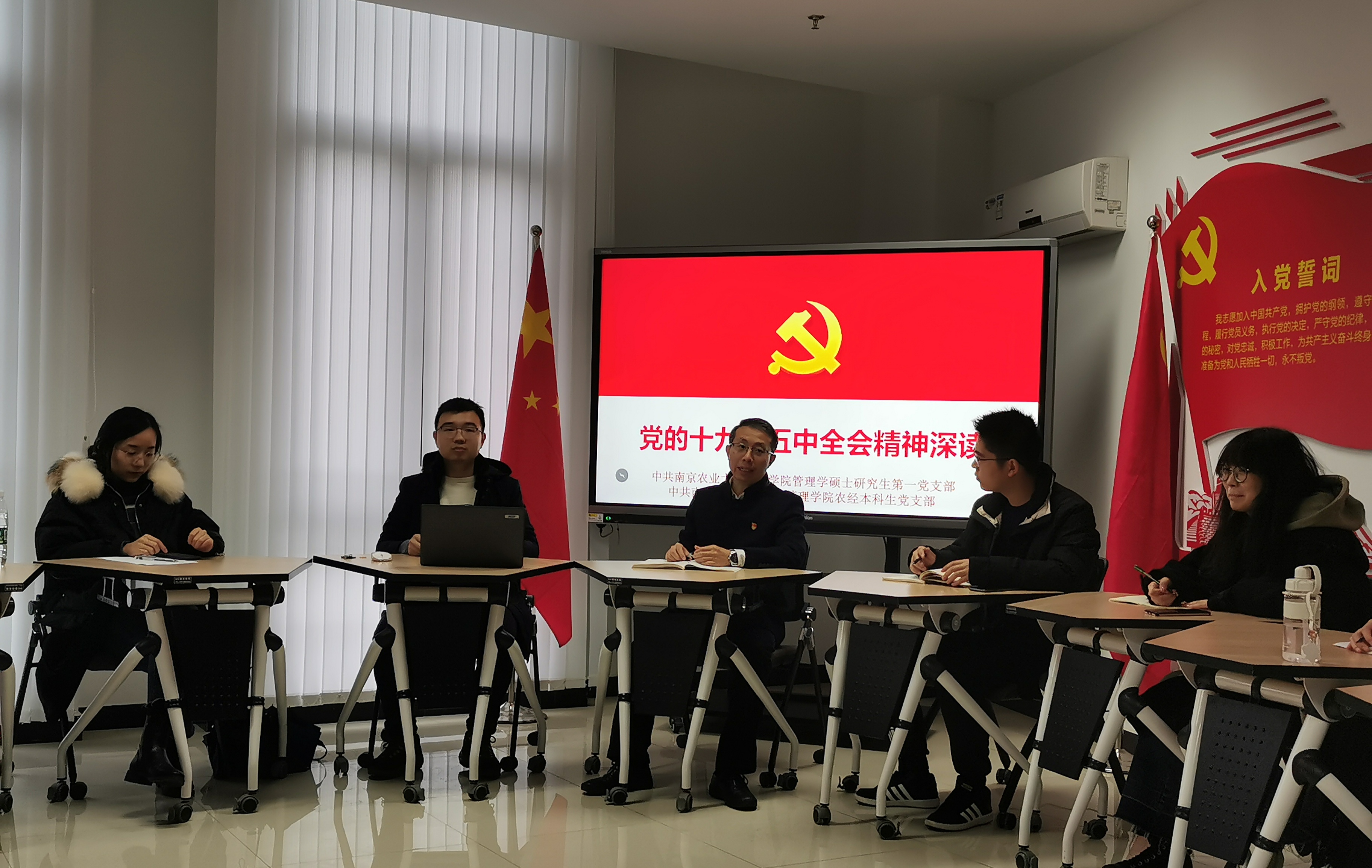 11月25日,农林经济管理本科生党支部与管理学硕士研究生第一党支部在第三实验楼725党员实境课堂组织开展“聚焦十九届五中全会,凝聚青春兴农力量”专题学习。学院党委书记姜海为联系的本硕党支部上专题党课,两个支部全体党员同学参加了本次学习。