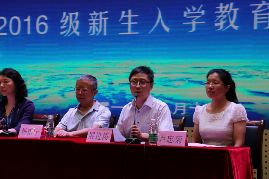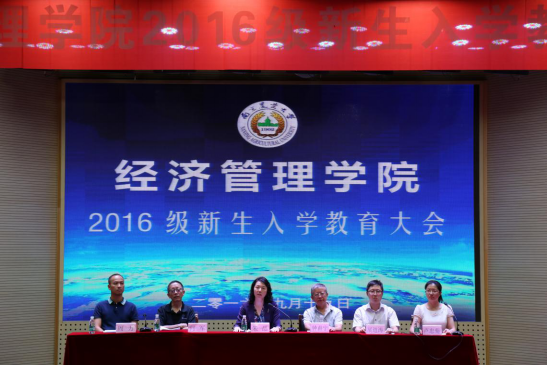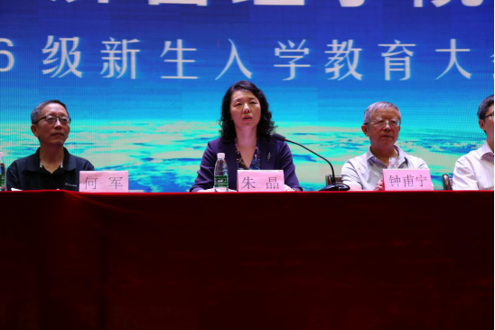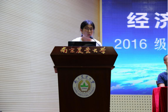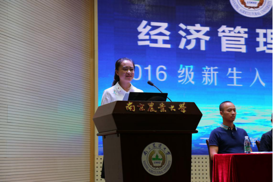 院长朱晶教授用详实的数据、生动的事例向新生们介绍了学院悠久的历史、雄厚的师资、学院国际化以及人才培养情况,并从自我管理、自我发现、全面提升等方面提了希望。