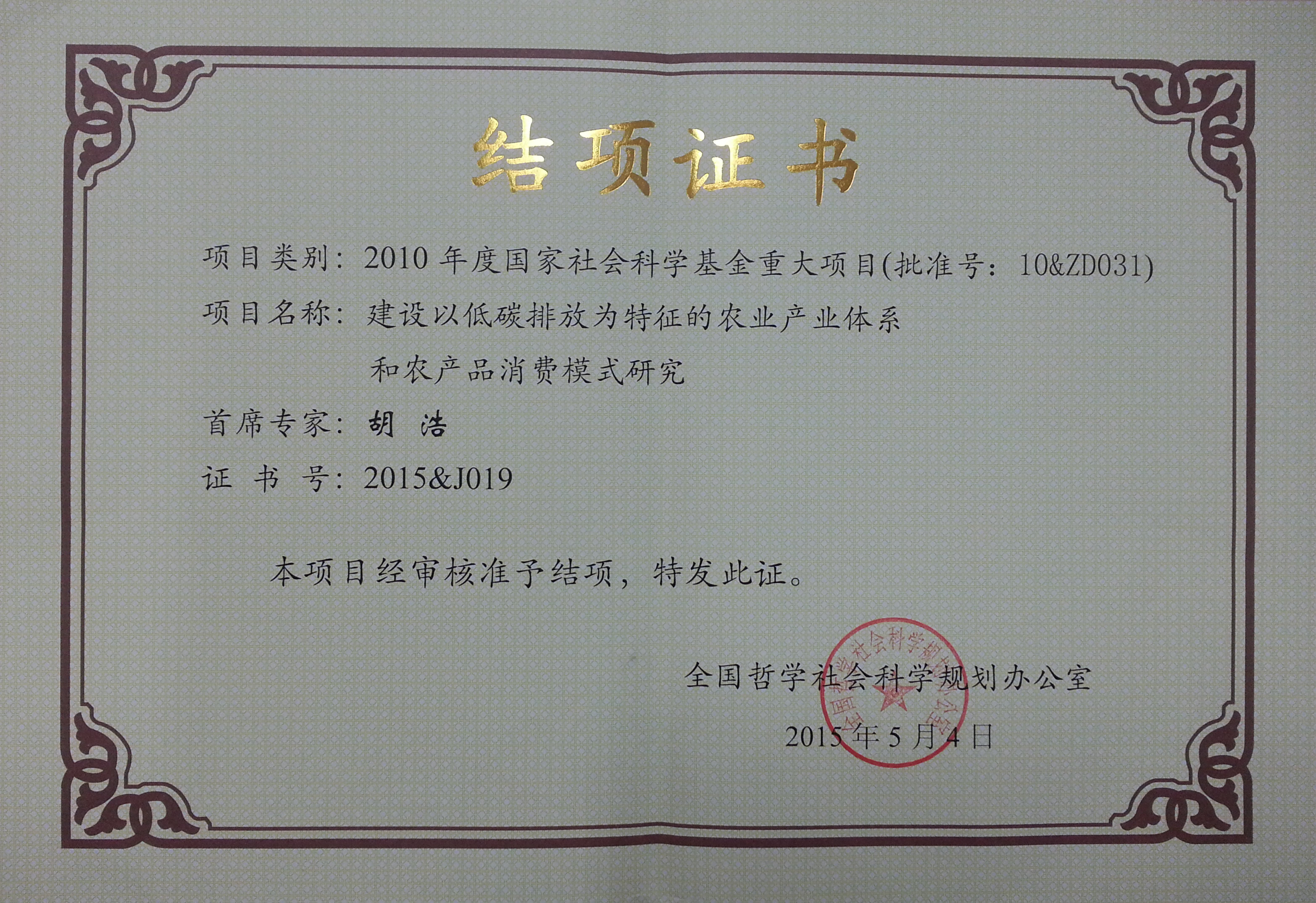 近日,接全国哲学社会科学规划办公室通知,学院胡浩教授承担的国家社科基金重大项目《建设以低碳排放为特征的农业产业体系和农产品消费模式研究》(10ZDA031)顺利通过结题验收。