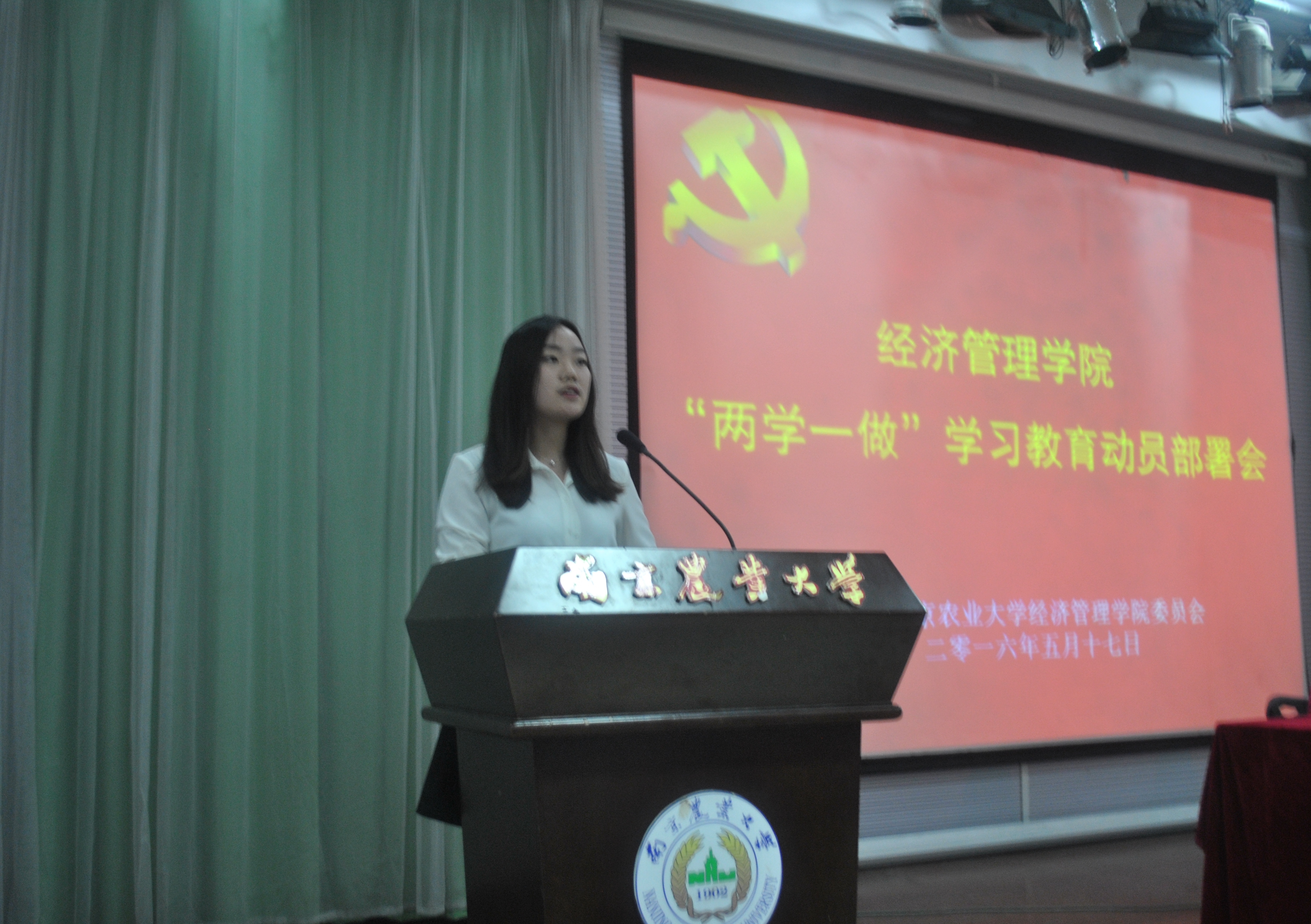 5月17日下午,bat365在线平台在教四楼报告厅召开了学生党员“两学一做”学习教育动员部署会。学校党委组织部部长、老干部办公室主任、学校党校常务副校长吴群教授为经管学院全体学生党员做了题为“学习党章,以知促行,做四讲四有合格党员”的专题辅导报告。学生辅导员和全院本科生研究生党员参加了会议。会议由学院党委副书记卢忠菊主持。