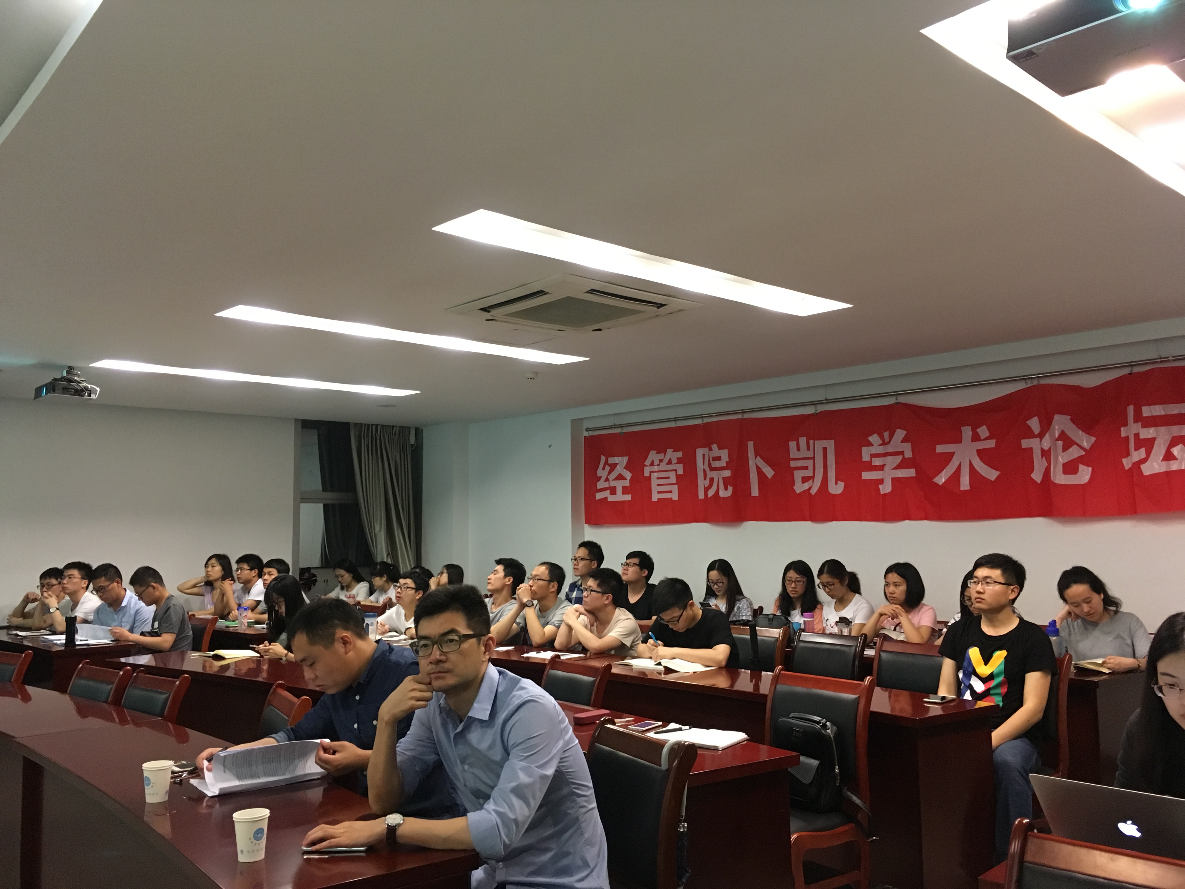 2016年5月31日晚7点,经管院研会学术部举办的第七十七期卜凯论坛在逸夫楼5086成功举办,硕士生丁文雁、钟力、刘淑怡和张河洁做了精彩的汇报,孙顶强老师、张兵兵老师给予了详细的点评。