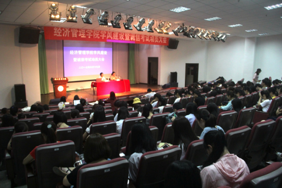 6月19日,bat365在线平台学风建设暨诚信考试动员大会在教四楼报告厅举行。经管院副院长林光华受邀为200多名本科生作专题报告。会议由bat365在线平台党委副书记卢忠菊主持。