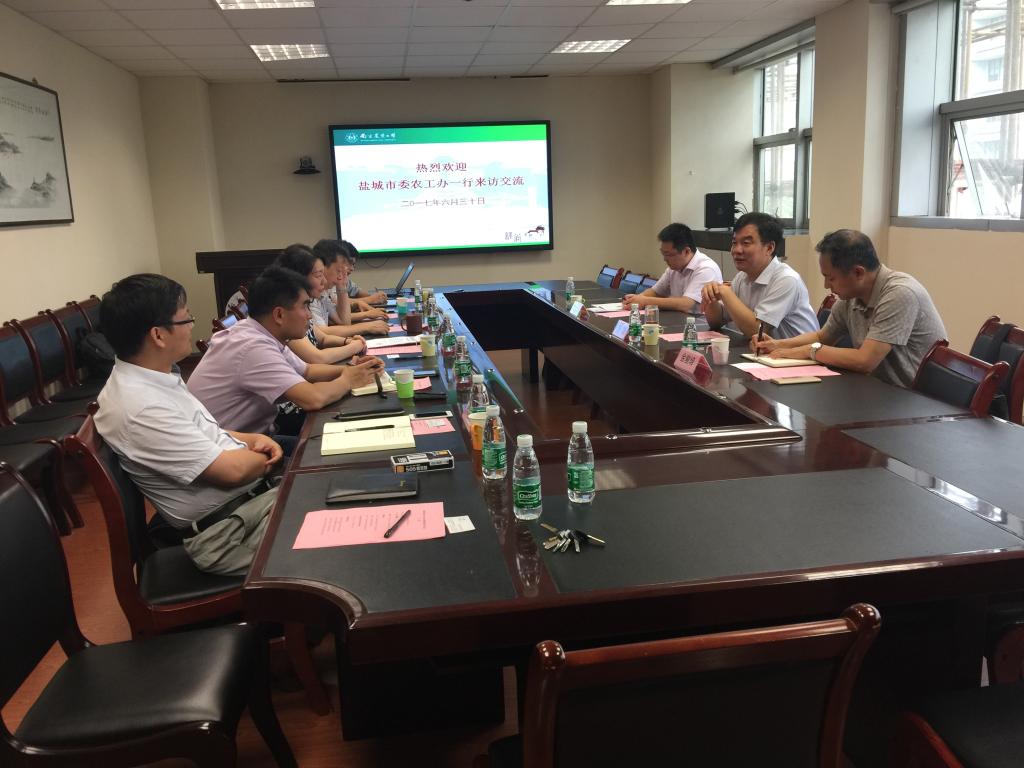 6月30日上午,盐城市委副秘书长、市委农办主任乐超、副主任金骏培、政策法规处处长倪志成一行来院访问,就盐城市农办与我院合作研究项目进行交流,院长朱晶、副院长耿献辉接待了乐超主任一行,胡浩、刘华、巩师恩、周德等教师参加了座谈。座谈会由耿献辉主持。