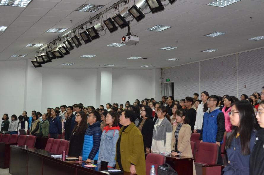 11月27日下午,学院在教四楼报告厅举办2017-2018学年分党校开班暨党的十九大学习辅导报告会,全体学生党员、入党积极分子参加开班培训,学习党的十九大精神。院党委副书记(主持工作)孙雪峰作“学习党的十九大精神,争做新时代的优秀人才”专题培训报告,院党委副书记卢忠菊主持会议。