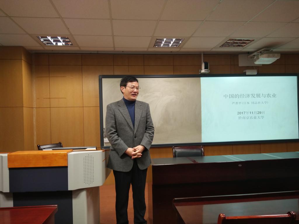 11月29日上午,来自日本同志社大学的严善平教授在逸夫楼5045学术报告厅,为我院师生做了题为《中国的经济发展与农业——基于速水佑次郎农业发展理论》的报告,报告会由我院苏群教授主持。
