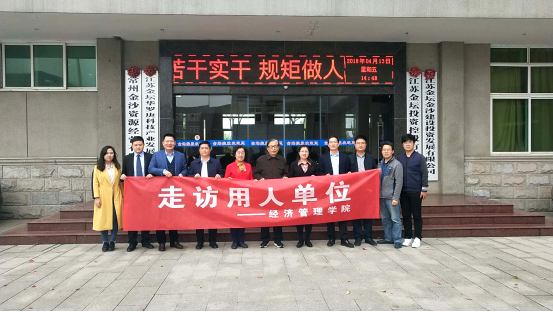 在江苏金坛投资控股有限公司,史荣生董事长对经管院一行表示热烈欢迎,介绍了单位发展概况和未来战略举措。卢忠菊介绍了学校“1235”发展战略、学院发展概况、人才培养创新举措和经管院毕业生总体情况。顾焕章教授表示,以签约授牌为新起点,希望两家单位深入合作,为师生多提供实习实践实训平台,为金坛控股推荐更多优秀毕业生,携手努力,协同发展。