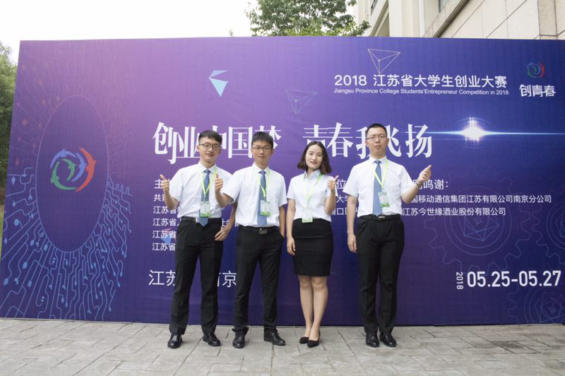 2018年5月25日-27日,2018“创青春”江苏省大学生创业大赛在南京举行。本次活动由共青团江苏省委、江苏省教育厅、江苏省人力资源和社会保障厅、江苏省科学技术学会和江苏省学生联合会联合主办,南京审计大学、南京市浦口区人民政府承办。