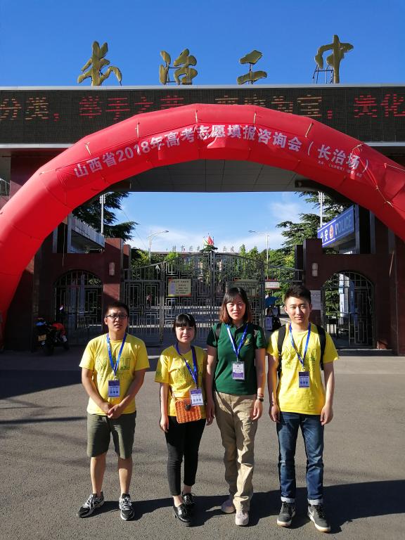 2018年高考志愿填报期间,我院组织50余名师生分赴山西和江苏盐城市开展招生宣传工作,共参与大型招生咨询会5场,走访生源基地中学41所,实现生源基地中学全覆盖,接待考生及家长咨询3000余次,取得了较好效果。