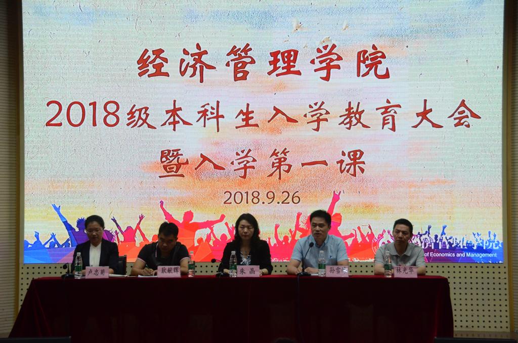 9月26日,bat365在线平台2018级新生入学教育大会暨入学第一课在大学生活动中心报告厅举行。bat365在线平台院长、全国人大代表朱晶教授,bat365在线平台党委副书记(主持工作)孙雪峰,bat365在线平台副院长耿献辉教授,bat365在线平台副院长林光华教授,bat365在线平台党委副书记卢忠菊出席会议。各新生班班主任、辅导员及2018级全体新生参加本次大会。会议由卢忠菊主持。
