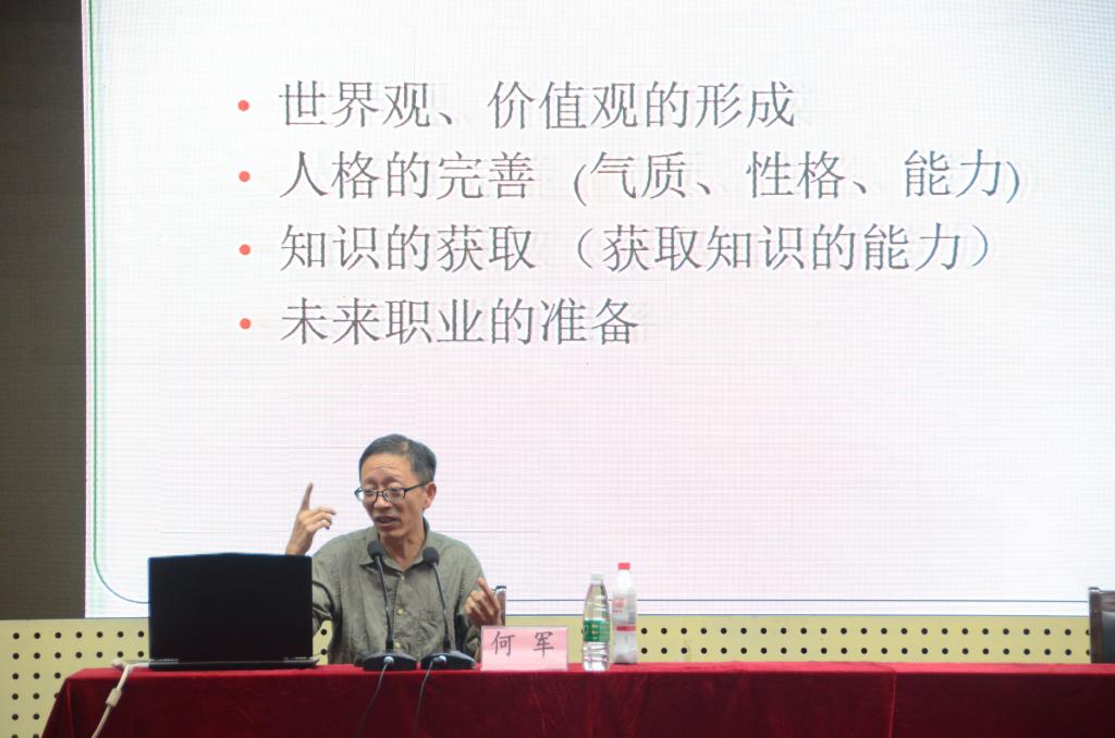 经管院管理系系主任何军教授从六方面为新生们上了入学第一课。第一方面何教授着重于对大学的认识,强调认识自己、认识学习的同时提高获取知识的能力。第二方面是大学的学习方法,何教授希望同学们课内认真学习“枯燥乏味”的专业课的同时,课外通过多种途径建立系统的知识体系。第三方面何教授强调大学的知识结构,打牢各种知识基础、强化各方面能力。第四方面何教授向同学们讲解了每个年级的关键环节。第五方面是大学各种关系的处理。第六方面,何教授强调四年后的选择,详细地为新生们讲解了三种未来的选择。何教授祝福新生们能够拥有光明的未来。