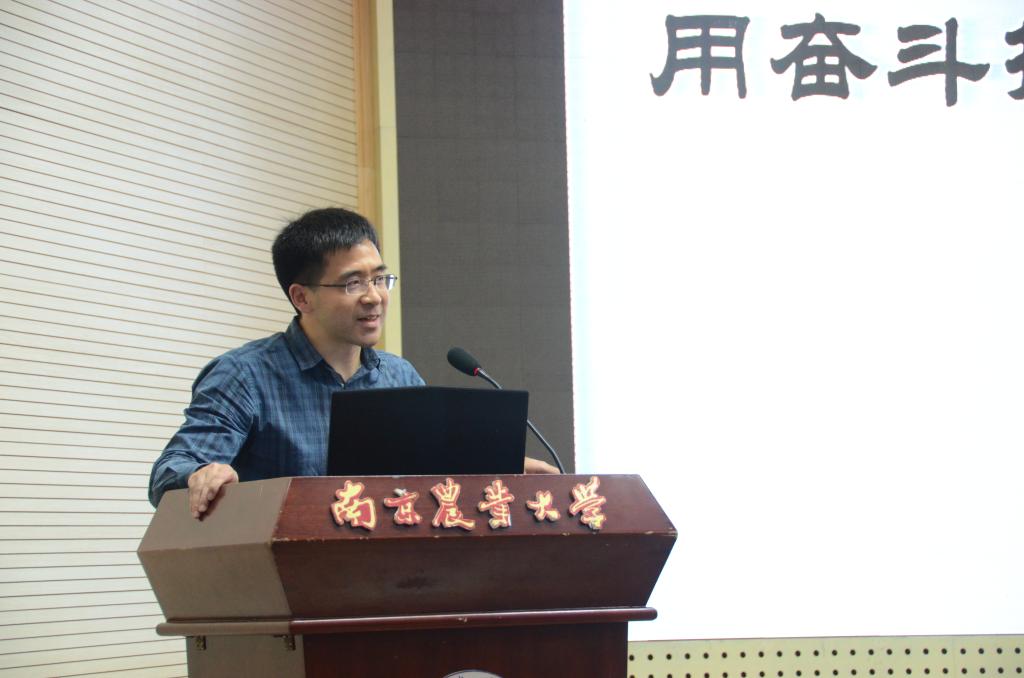 我院校友、农业部南京农业机械化研究所副所长曹光乔研究员为同学们上了题为“用奋斗擦亮青春底色”的入学第一课。曹所长深情回忆了在南农经管学院学习工作生活的美好时光。以图文并茂的形式分享了本班同学求学期间的感人故事:有的同学学业主辅修并重,有明确清晰的规划并且不断完善提升自己;有的积极参加社团活动,发挥特长,不断进取;有的注重综合素质全面提升;还有的专心做学霸……最后曹所长强调大学生要注重学习、积极社交、修养身心并遵守规则,用奋斗点亮自己的青春。